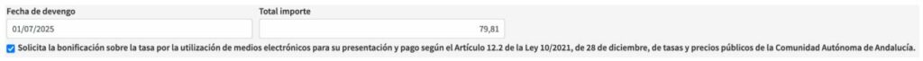 - A estos importes se les aplicará un descuento por pago por medios electrónicos que se verá reflejado en el total final a pagar. Para ello es necesario asegurarse de marcar la siguiente casilla: